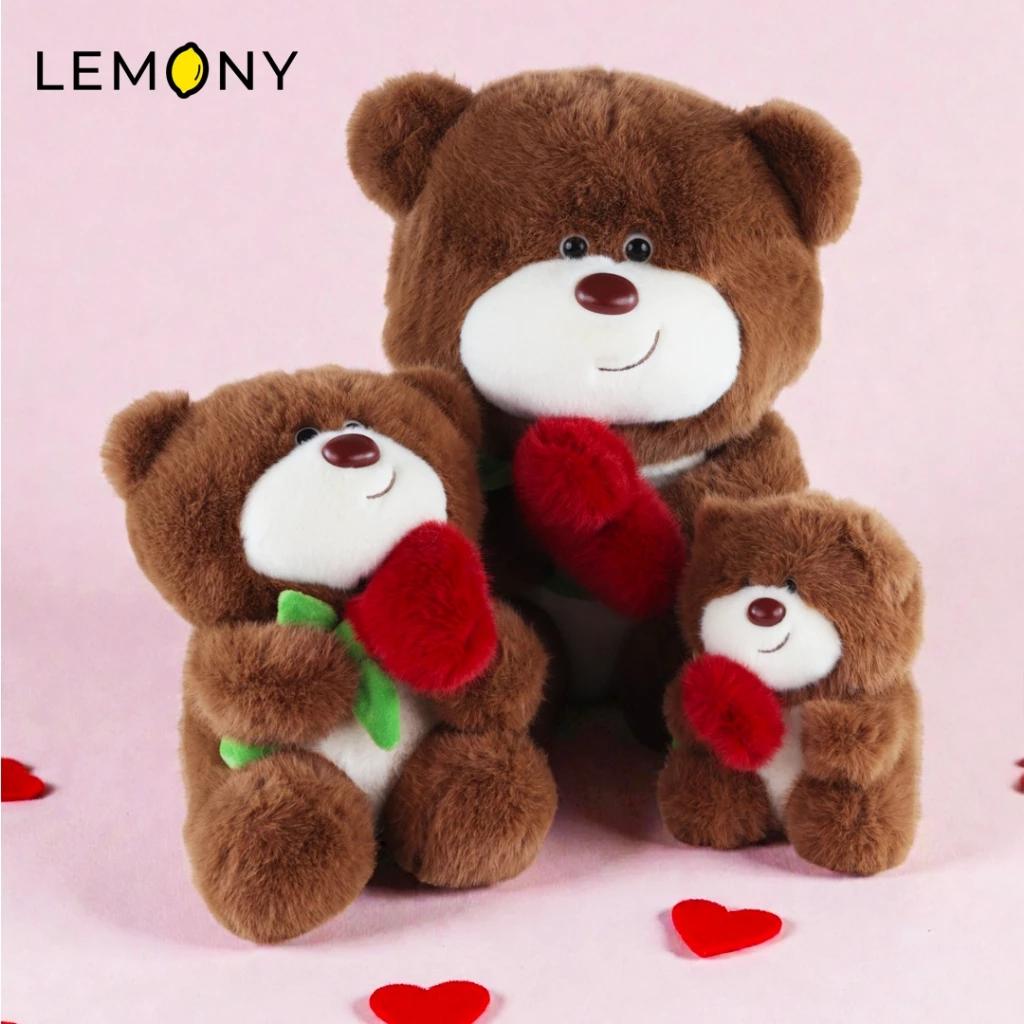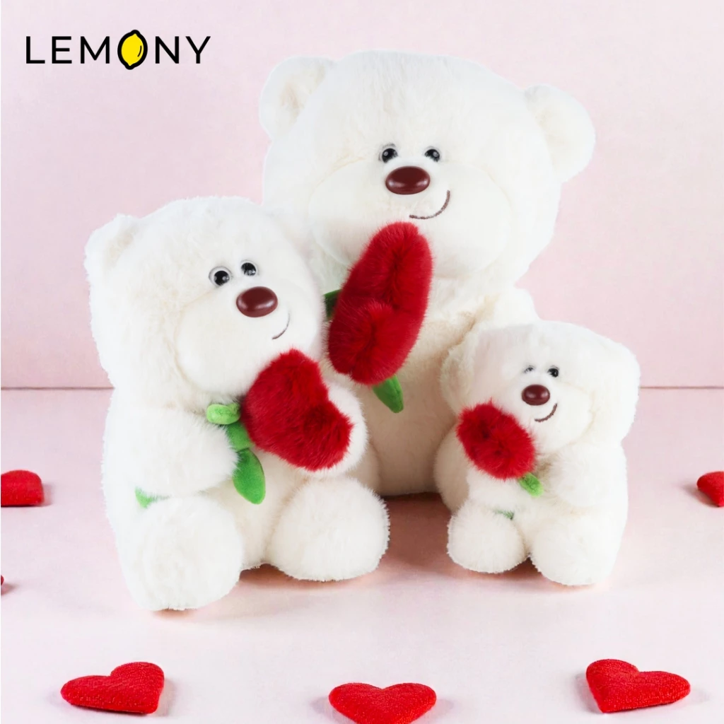 ตุ๊กตาหมีถือดอกกุหลาบ จาก LEMONY ขนนุ่มนิ่มโอบกอดหัวใจสีแดง มี 2 สี 3 ขนาดให้เลือก ของขวัญวันวาเลนไทน์และวันครบรอบสุดพิเศษ สื่อความรักที่อบอุ่น